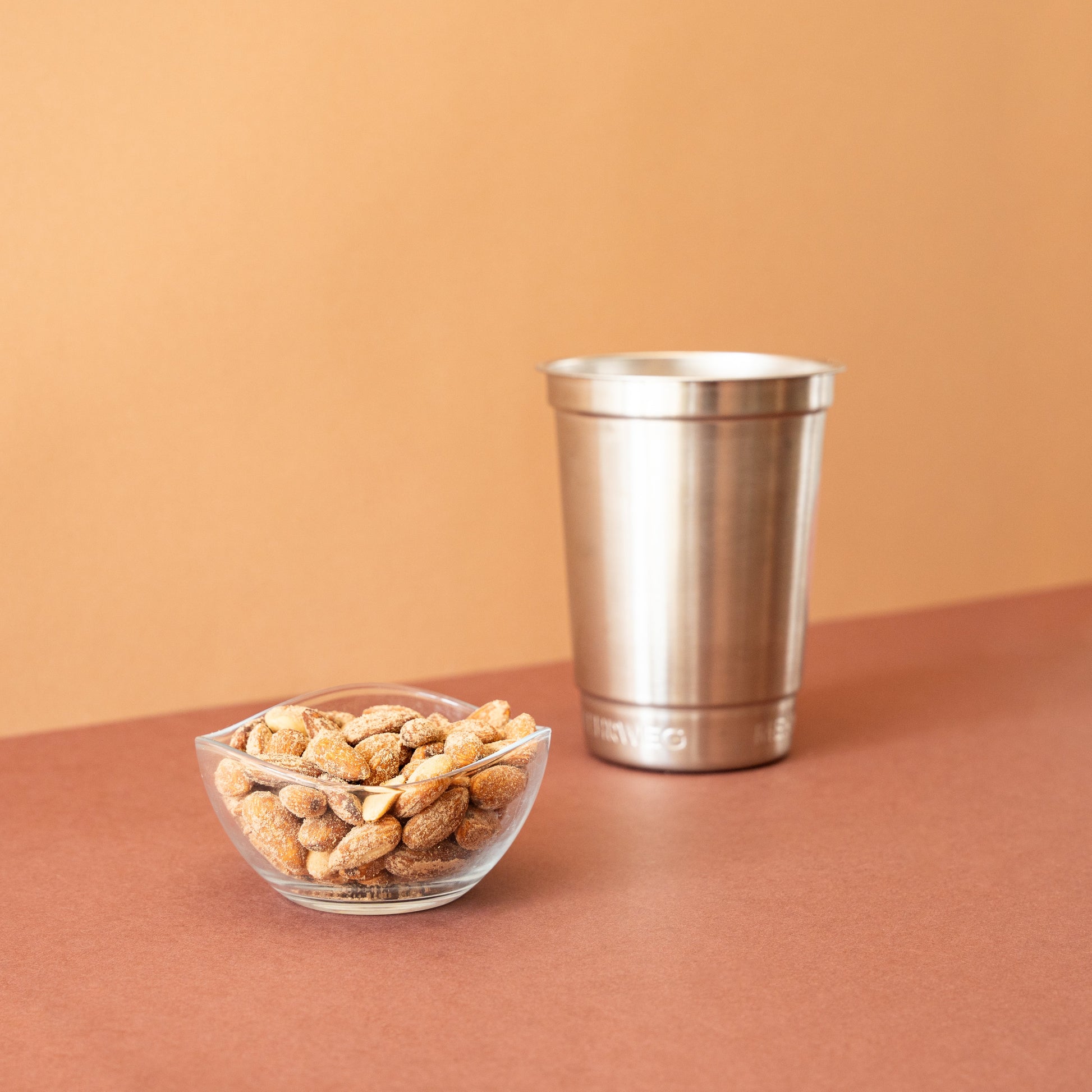 Nieuw, nu in de RVS navulpot. Deze amandelen hebben een bijzondere, unieke smaak door het rookproces. Ideaal voor de zaterdagavond, als verjaardagsnack of lekker tussendoor!