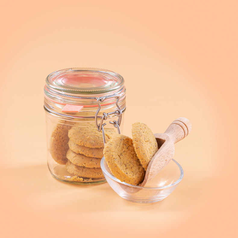 Een heerlijk fris vegan koekje met een bijzondere bite door het maanzaad. De citroenolie is puur en circulair en wordt gemaakt uit de reststroom van de schil van de citroen.