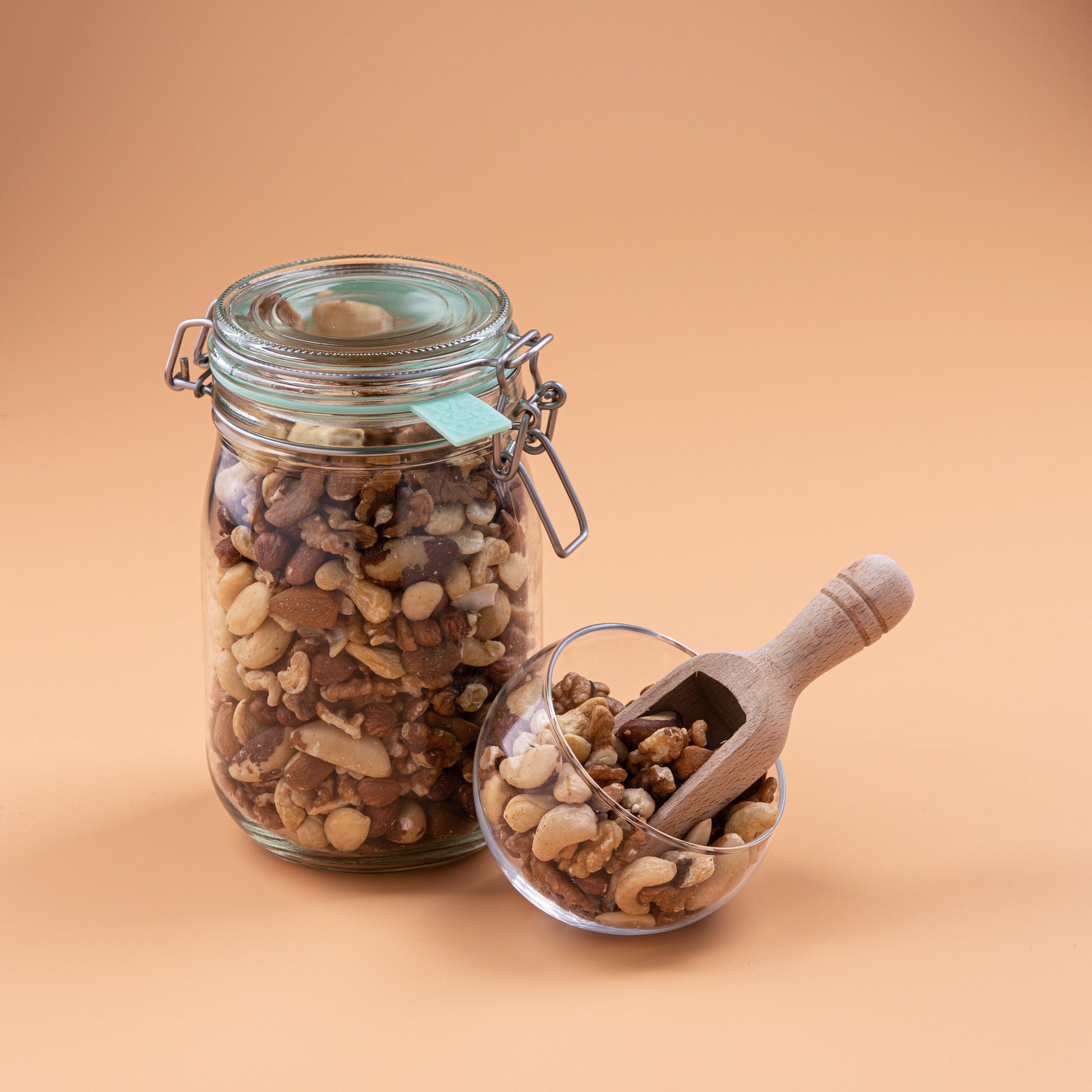 - Deze pot bevat 525 gram notenmix, waarmee je wel 2 plastic verpakkingen bespaart! Dat is een potje dubbel genieten.