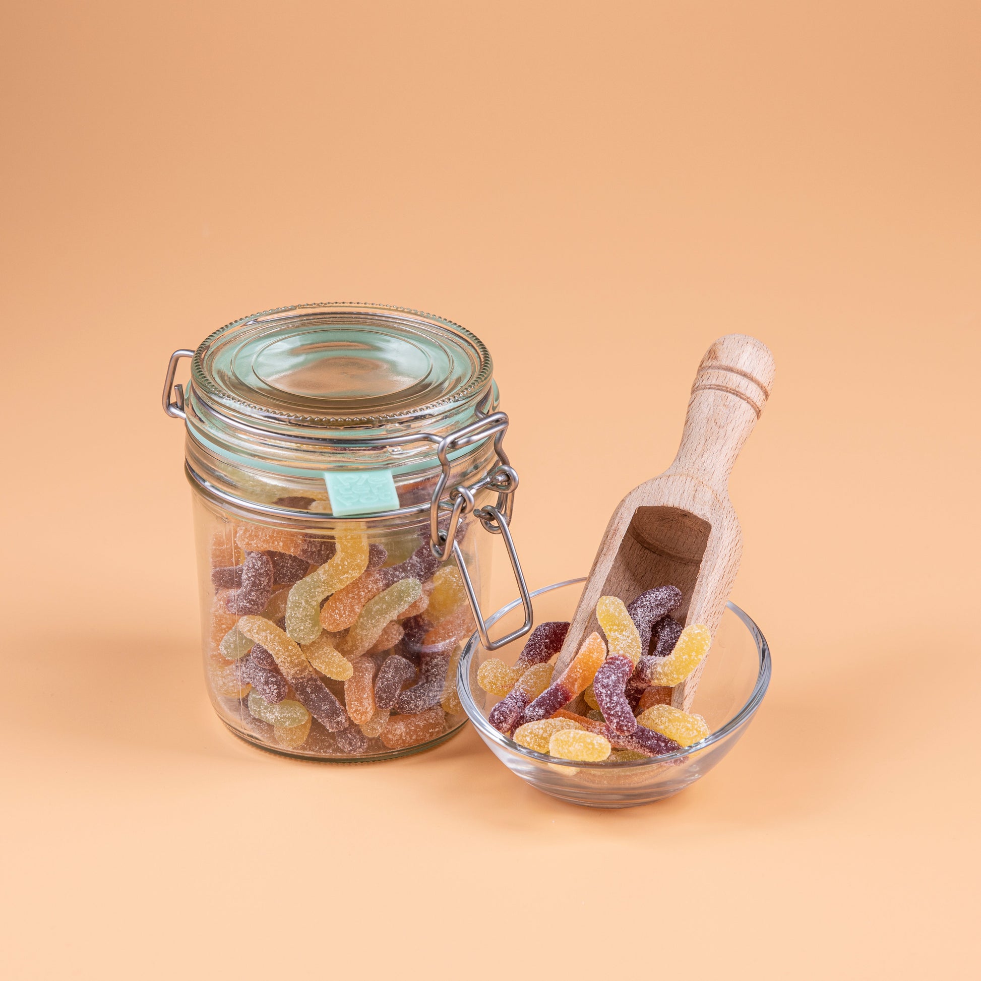 - Deze pot zure wormen bevat 320 gram, waarmee je wel 2 plastic verpakkingen bespaart! Dat is een potje dubbel genieten.