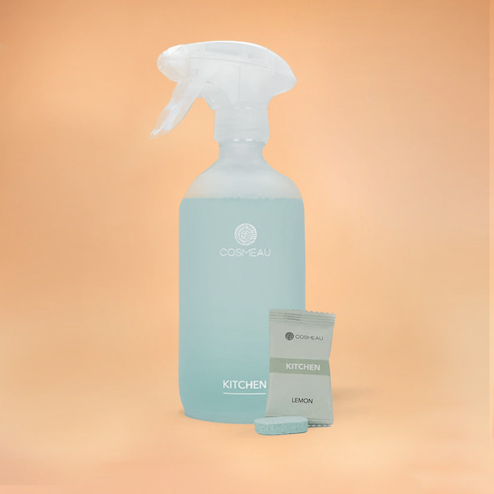 Maak je keuken sprankelend schoon op een duurzame manier met de Cosmeau keukenreiniger! Vul de stijlvolle herbruikbare glazen fles met 500 ml kraanwater, voeg de krachtige navulling toe, en geniet van een effectieve keukenreiniger die moeiteloos vet en vuil verwijdert. Zonder wegwerpplastic en perfect voor jouw duurzame schoonmaakroutine.
