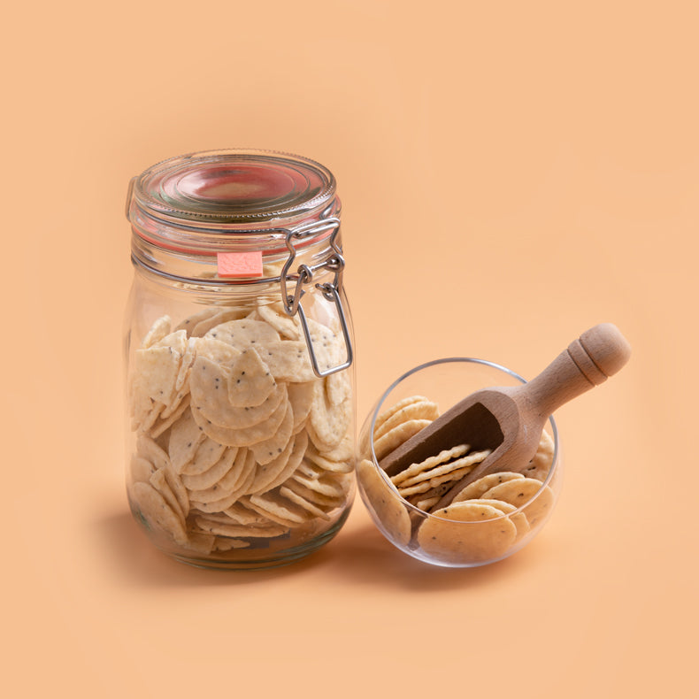 Knapperige, lichtgezouten rijstcrackers. Heerlijk voor bij de borrel!