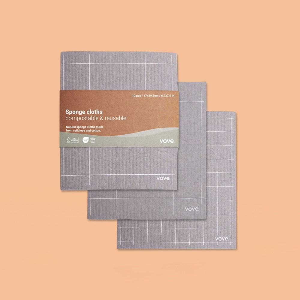 Deze biologisch afbreekbare sponsdoeken van Skosh x Vove zijn gemaakt van 100% natural and renewable resources: ze bestaan uit 70% houtcellulose en 30% katoen. De sponsdoeken zijn herbruikbaar en wasbaar op 90 °C, hierdoor kun je ze vaak gebruiken voordat ze kunnen worden gerecycled of zelfs op je eigen composthoop kunnen!