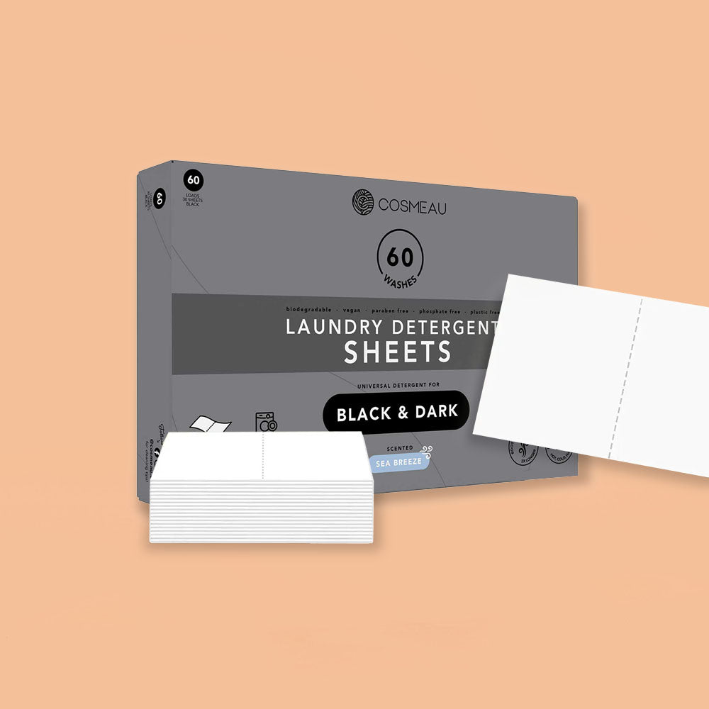 Wassen met de Cosmeau wasstrips is kinderspel. Wasgoed in de machine, papierenwasstrip erbij, programma starten en klaar! Het werkt hetzelfde als wasmiddel wat je gewend bent, alleen dan zonder wegwerpplastic flessen, onnodige chemicaliën een een onhandige doseerdop. Ze lossen volledig op in het water en er blijft geen residu over in de machine. Deze wasstrips zijn doordrenkt met een subtiele, verfrissende geur van zeebries. Waardoor je het gevoel hebt dat je over het strand loopt bij het dragen van je kleding. Deze strips zijn bedoeld voor donkere was.
