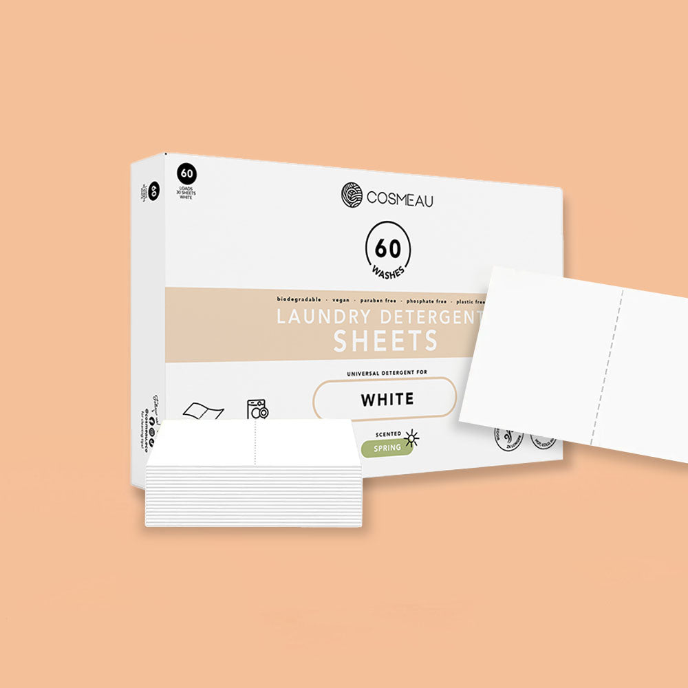 Wassen met de Cosmeau wasstrips is kinderspel. Wasgoed in de machine, papierenwasstrip erbij, programma starten en klaar! Het werkt hetzelfde als wasmiddel wat je gewend bent, alleen dan zonder wegwerpplastic flessen, onnodige chemicaliën een een onhandige doseerdop. Ze lossen volledig op in het water en er blijft geen residu over in de machine. Deze wasstrips zijn doordrenkt met een subtiele, verfrissende geur van lentebries. Waardoor je de vogels al hoort fluiten als je je kleding aantrekt. Deze strips zijn bedoeld voor witte was.